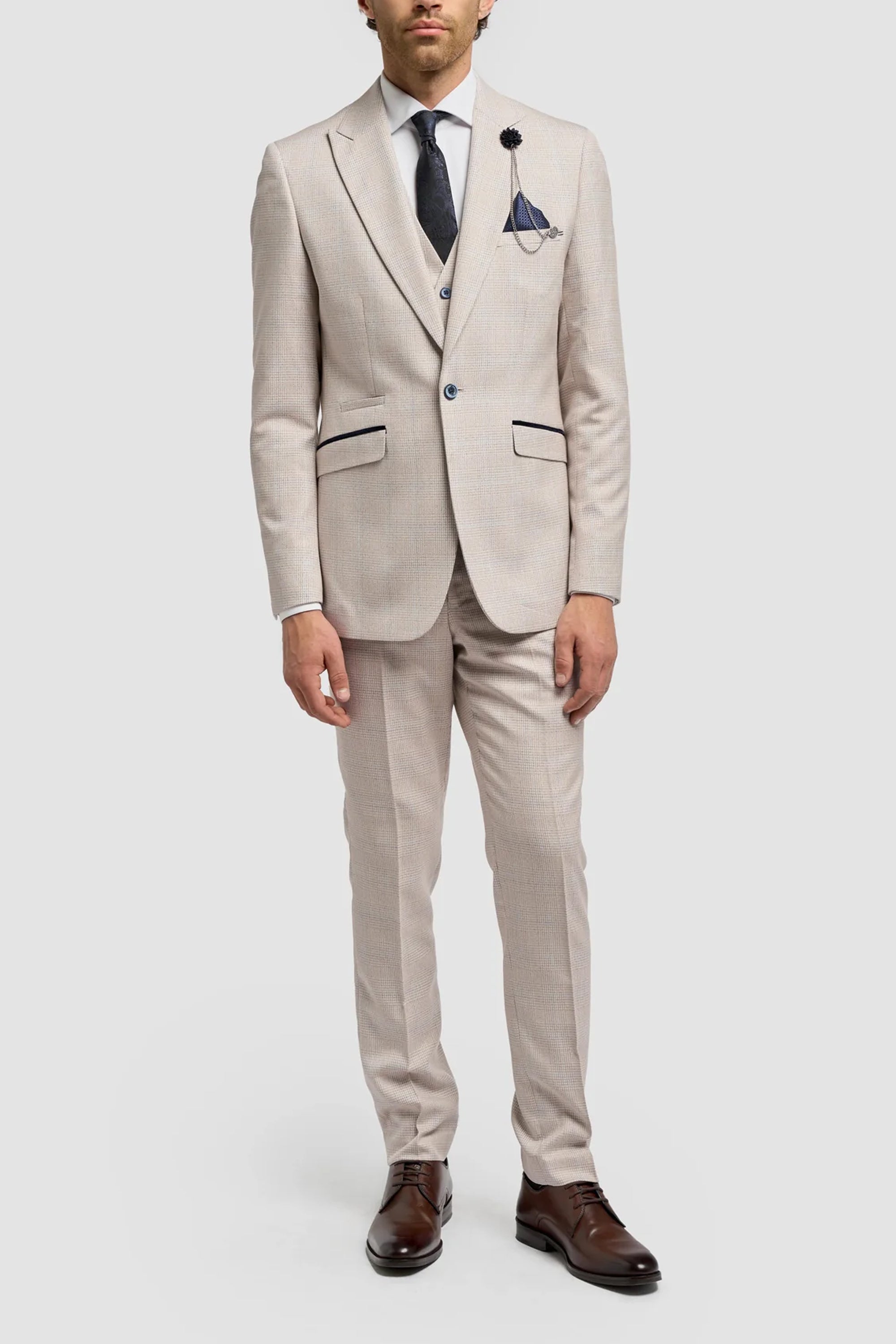 Bromley Stone Check 3pc Suit