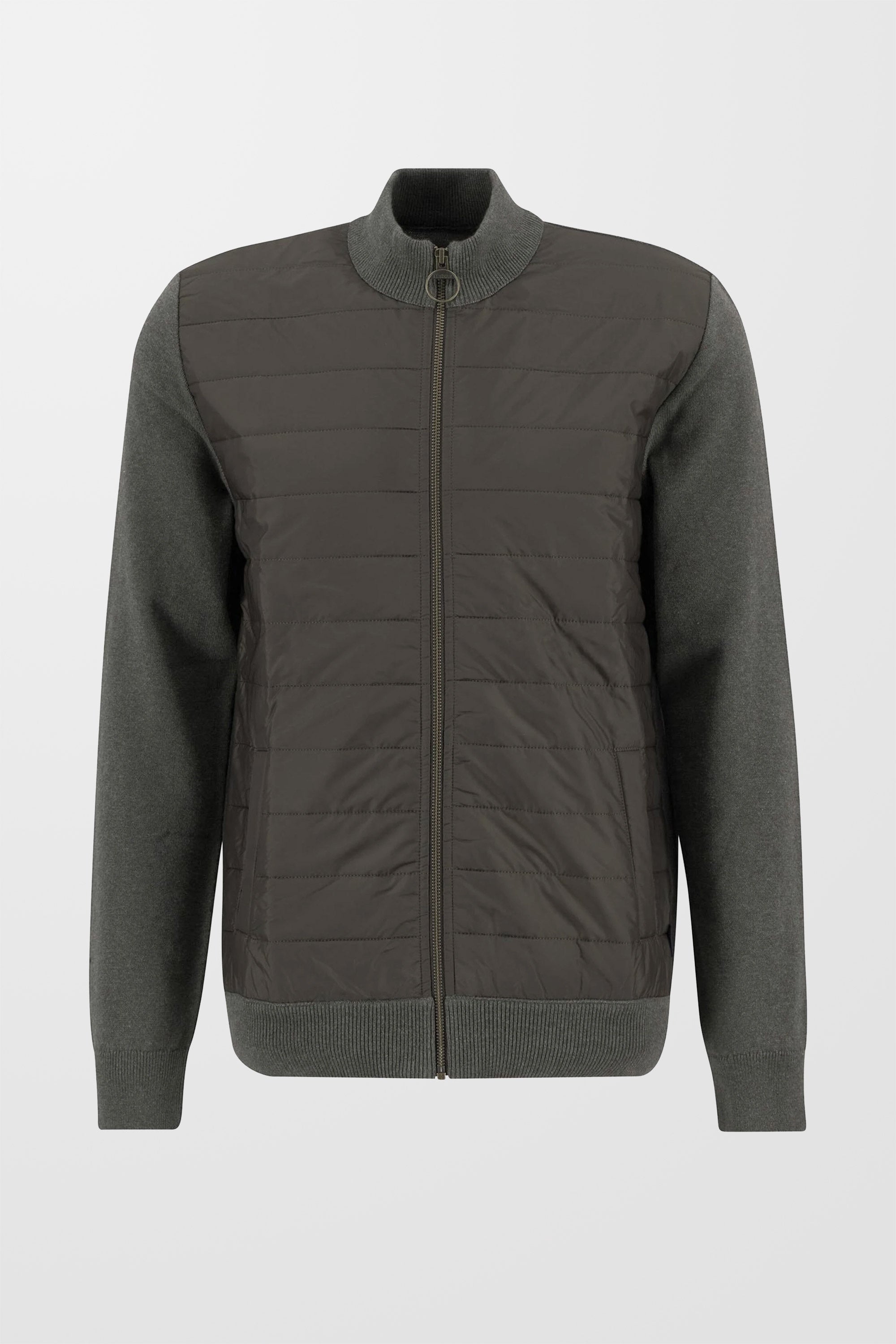Essential Carn Zip Through Quilted Jumper (in Olive)