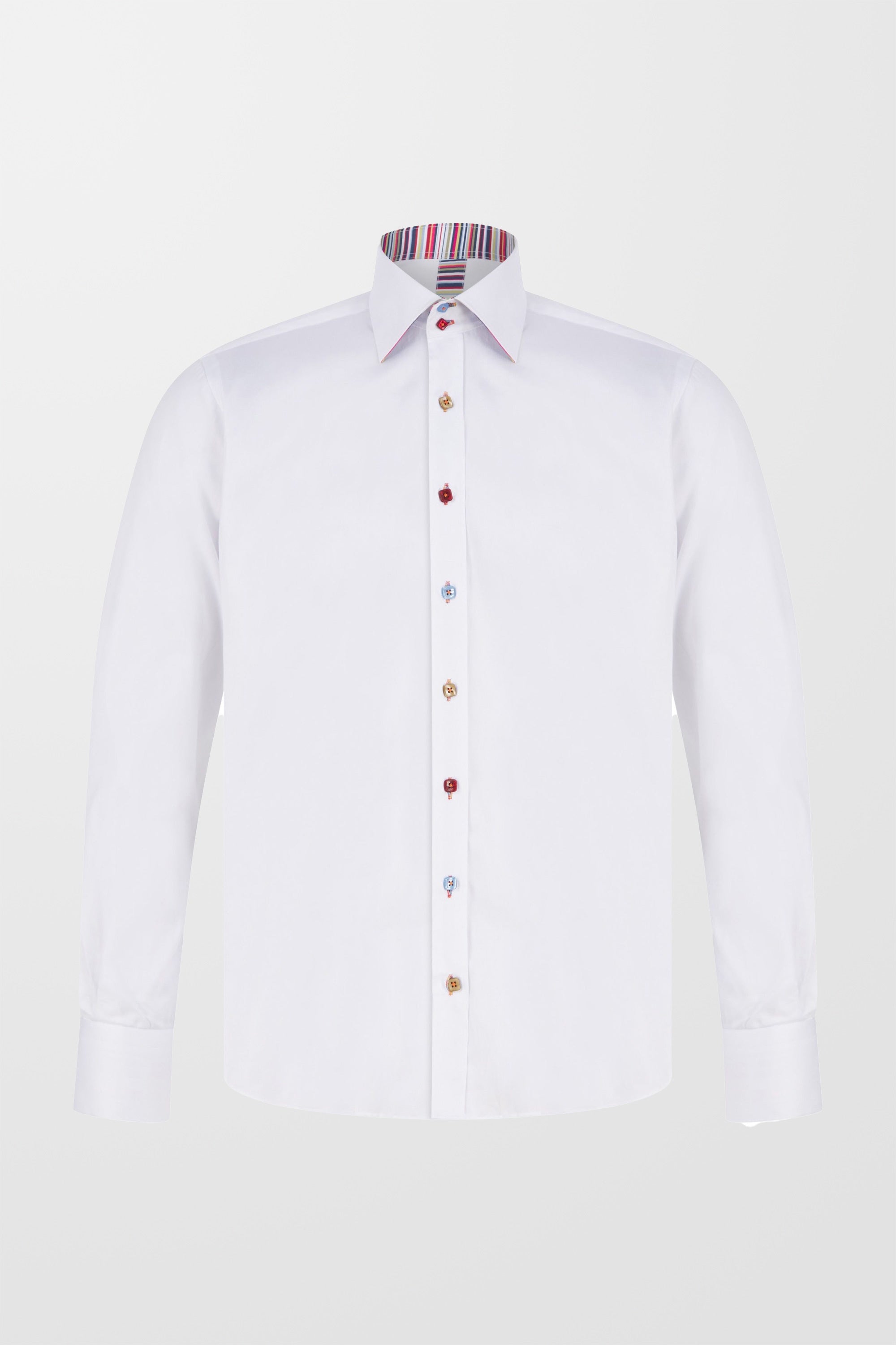 Plain Stripe Detail Long Sleeve Cotton Shirt (in White)