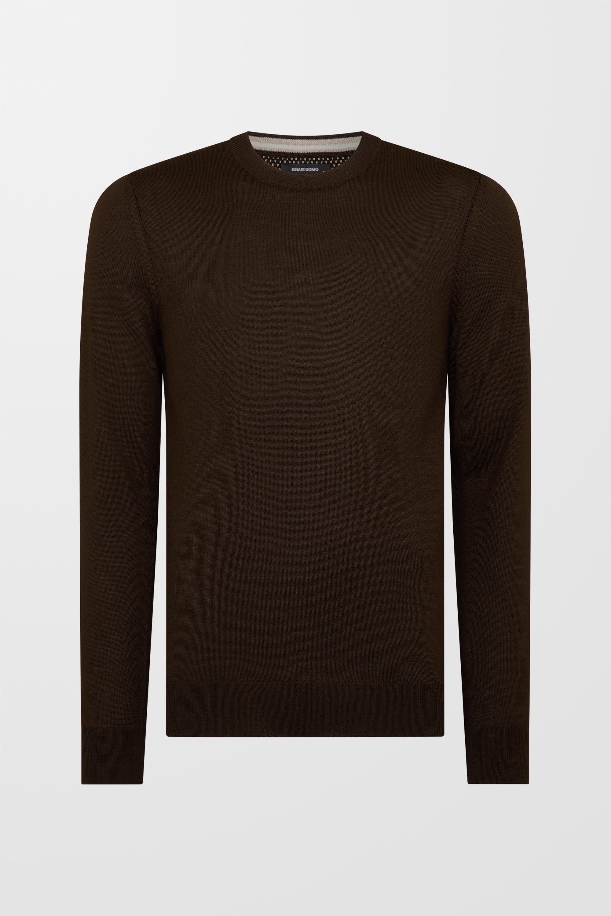 Tapered Fit Wool Blend Crew Neck Jumper (in Brown)