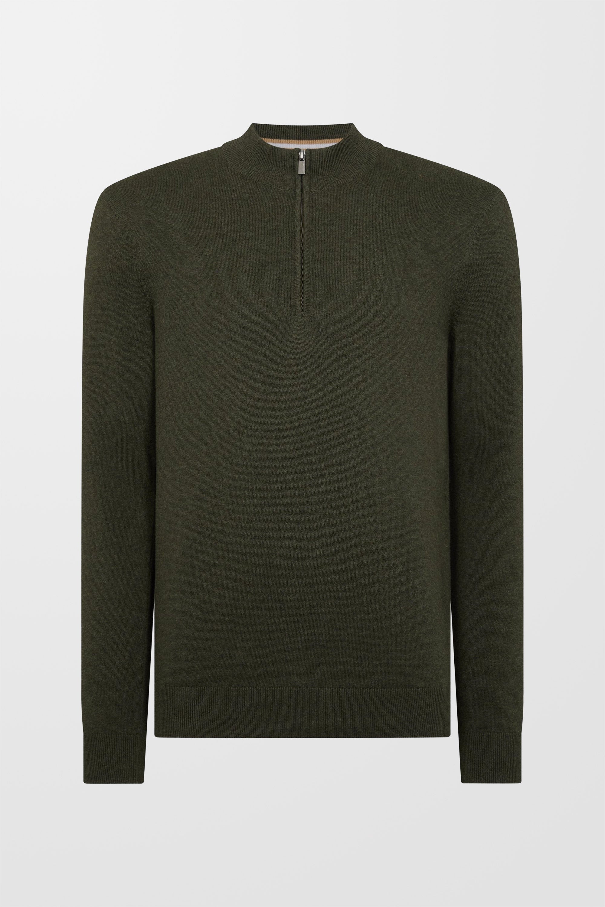 Tapered Fit Cotton Half Zip Jumper (in Green)